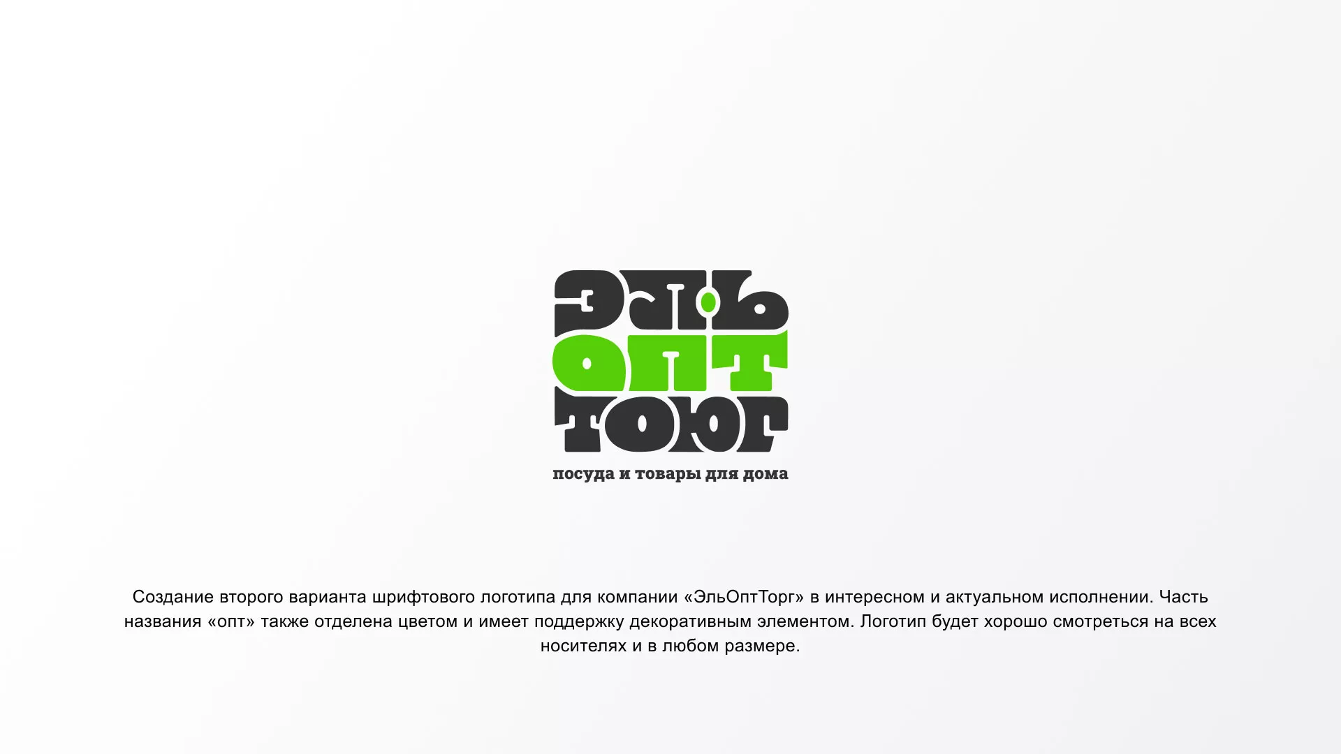 Создание второго варианта шрифтового логотипа в Кувандыке для компании «ЭльОптТорг» в интересном и актуальном исполнении. Часть названия «опт» также отделена цветом и имеет поддержку декоративным элементом. Логотип будет хорошо смотреться на всех носителях и в любом размере.
